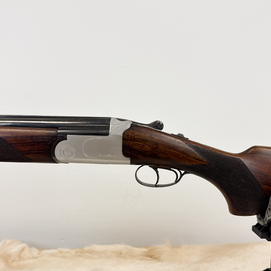 Castellani Star Vega i kaliber 12/70 med 70 cm løb er en klassisk og velafbalanceret dobbelthagl, der kombinerer traditionelt design med god funktionalitet. Denne brugte model i venstreversion (links) er ideel til dig som venstrehåndsjæger, der ønsker en jagtpladsbøsse med solid driftssikkerhed, god balance og klassisk feel – perfekt til fuglejagt og skydning i marken.