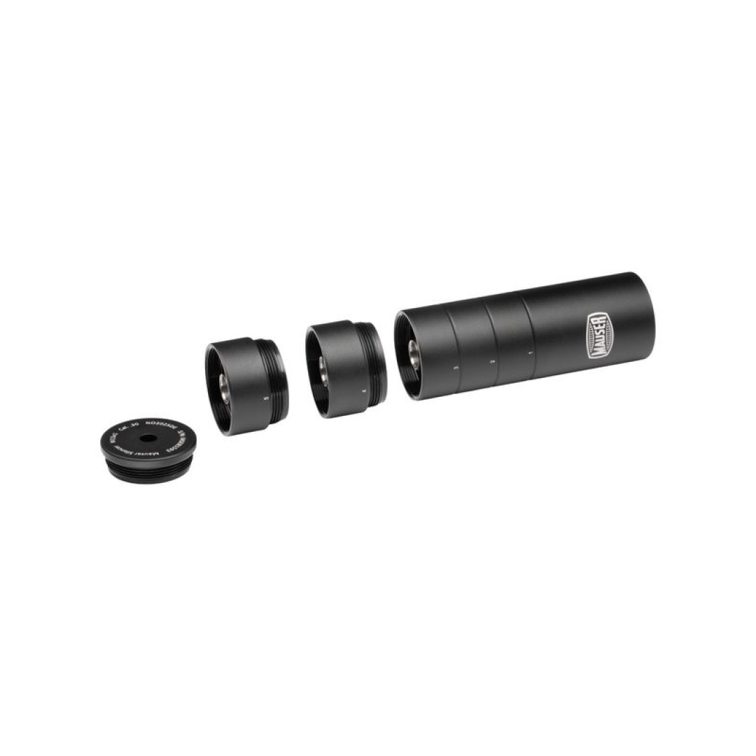 Mauser Lyddæmper M15x1 Max 6,5 mm – Modulopbygget er en effektiv og fleksibel lyddæmper udviklet til jægere, der ønsker optimal støjreduktion og mulighed for individuel tilpasning. Denne model er designet til kaliber op til 6,5 mm og monteres med M15x1 gevind, hvilket gør den velegnet til en lang række moderne jagtrifler.
