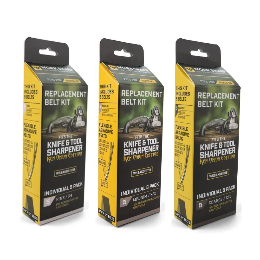 Work Sharp Ken Onion Bånd 5 stk. pakke er et alsidigt og praktisk sæt slibebånd til din Work Sharp slibemaskine – udviklet i samarbejde med knivmager-ikonet Ken Onion. Disse slibebånd giver dig mulighed for hurtigt at slibe, vedligeholde og finpudse knive, værktøj, økser og andre skærende redskaber med professionelt resultat. Sættet inkluderer flere grit-typer, så du har både groft, medium og fint slibemateriale til forskellige slibeopgaver og finishniveauer.